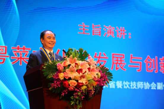在研讨会的主旨分享活动现场,广东省餐饮技师协会副会长谢智强发表“粤菜文化的发展与创新思考”的主旨演讲,从五个方面层层剖析,娓娓道来。一是粤菜文化发展孕育阶段——明未清初时期,二是粤菜文化发展成长阶段——民国初到建国前时期,三是粤菜文化发展成熟阶段建国后到改革开放前时期 ,四是粤菜文化发展创新成熟阶段——改革开放后时期,五是粤菜的未来——百年传承。