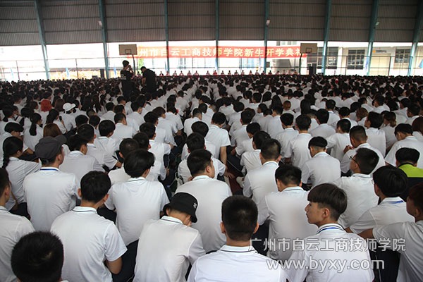 8月21日,广州市白云工商技师学院2018级新生开学典礼在风雨球场隆重举行。院长李孟强等领导及学院各职能部门、系(室)负责人和来自全国各地的数千名新生共同参加了本次盛典。
