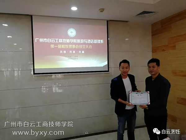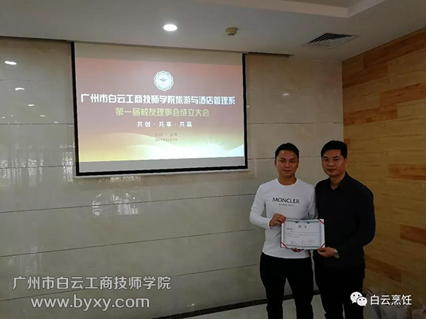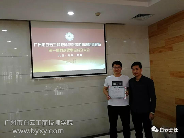 优秀校友莫英权当选为白云工商技师学院旅游与酒店管理系首届校友会会长