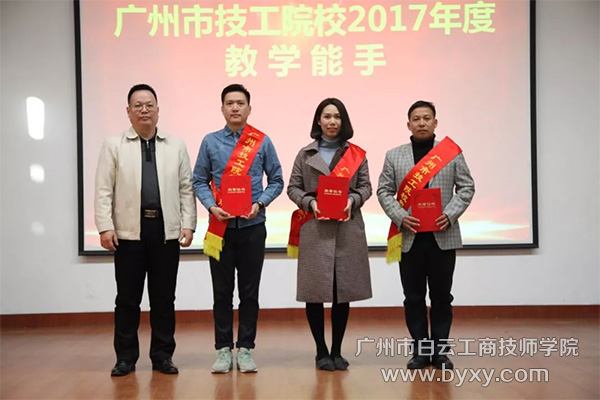 白云工商技师学院院长李孟强(左)为广州市教学能手颁奖