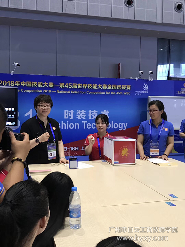此前的2016年,温彩云同学与学长李浩栋同学,已经代表广东省参加过第44届世界技能大赛时装技术项目全国选拔赛,并顺利进入国家集训队。