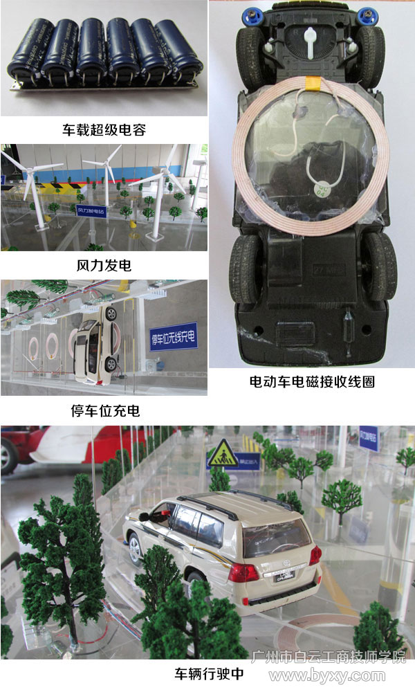 现代交通系教师江剑波和李伯彩设计的《道路无线充电行驶系统》,则是利用道路(停车位)预埋充电线路,电动汽车在行驶途中或停车场的停车位上用无线方式进行充电,随时保持充电状态。同时使用超级电容比传统电池具有的优异特性提高续航能力及减轻负载,结合交通流量检测的功能将光伏和风力发电提供辅助电能有效利用,最终采用计算机辅助管理整个系统达到智能控制的目的而实现电动汽车的无垠里程。