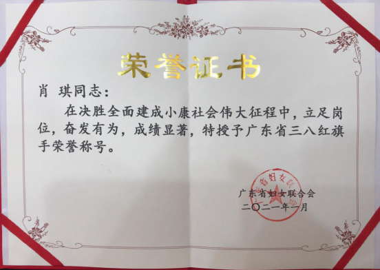我院金牌选手肖琪获广东省人民政府奖励25万元