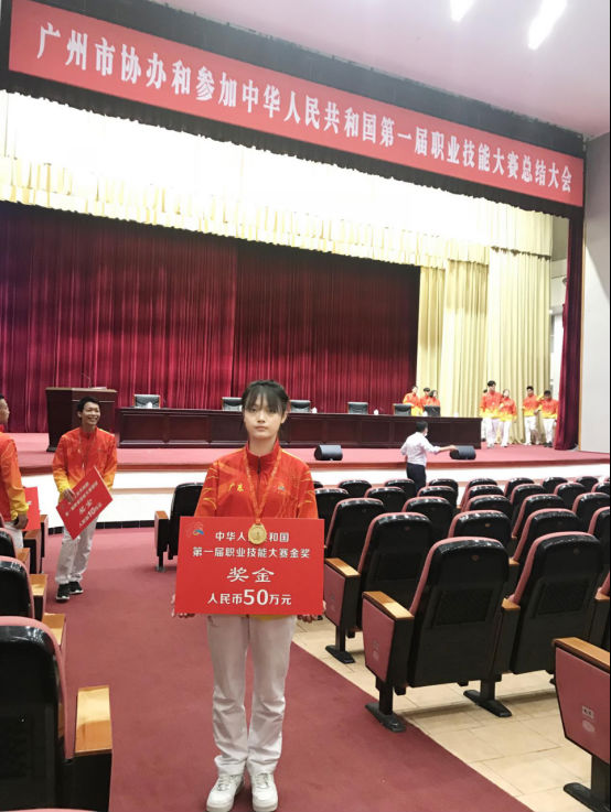 其中,广州市白云工商技师学院学子肖琪夺得第一届全国技能大赛时装技术项目金牌,获广州市人民政府给予通报表扬,奖励人民币50万元,并给予晋升高级技师职业资格或职业技能等级。同时,时装技术项目的技术指导专家组也获奖励人民币50万元。