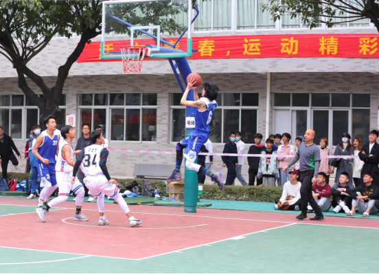 我院比赛球员正在带球上篮