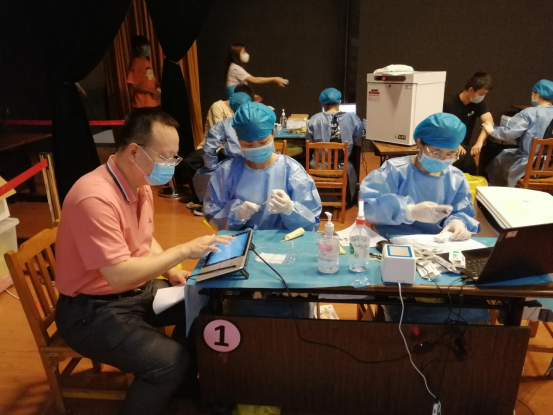 5月14日10时,南方医院白云分院进到我院开展新冠疫苗接种工作,截至下午3时,共有近2100名年龄在18至59周岁的教职员工、学生接种了疫苗。