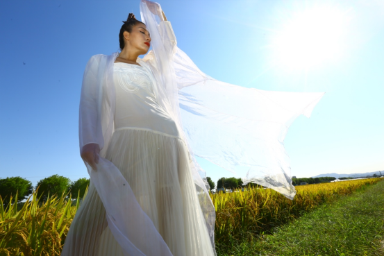 欣赏完这番美景,在带队老师的安排下,大师班的同学们深入稻田,有的拿着相机负责拍摄,有的担任服装模特,开始进行系列拍摄工作。通过系列作品创作,表现时尚与农业、时尚与稻田的关系,以艺术和时尚作为媒介宣传粮食安全的重要性和推广南粤丝苗米这张广东农业名片。