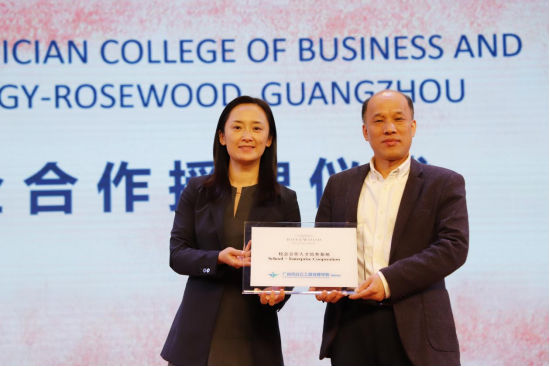 广州瑰丽酒店成为我院专业实习基地。左为瑰丽酒店集团地区人才与文化总监牟青,右为我院副院长周强