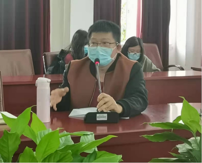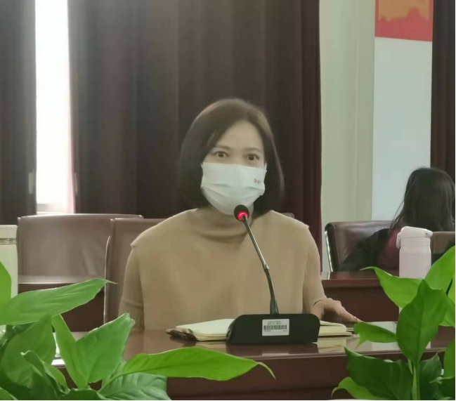 教务处实训中心主任李玉招(左一)正在作总结汇报