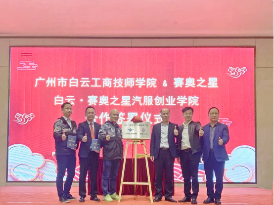 今年2月,广州市白云工商技师学院现代交通系汽车专业与赛奥之星达成合作,计划共建“白云·赛奥之星汽服创业学院”,搭建学子与企业衔接平台。"赛奥之星"是汽车后市场服务全国连锁经营品牌,致力于经营者思维培养,打造强店、创新汽车后市场服务模式,成就汽车维修人的老板梦想。