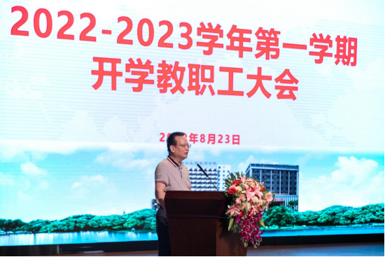 为做好2023年新学期开学前各项工作,8月23日上午,广州市白云工商技师学院召开全体教职工大会。我校在大礼堂召开2022-2023学年第一学期开学教职工大会,会议由总支书记方荣同志主持,大会分为5个议程,分别是教务处、学生处负责人对开学与学期重点工作进行汇报,人事处对《关于社会保险与住房公积金学校缴纳办法改革方案的说明》做解读报告,再由赵顺灵校长对学校近三年学生的流失情况进行汇报及控流培训,最后由李孟强校长做开学工作动员。