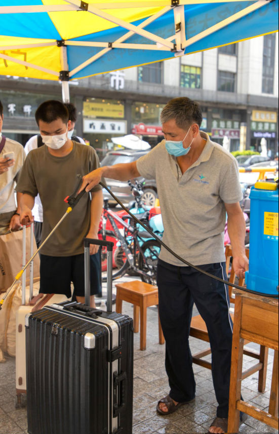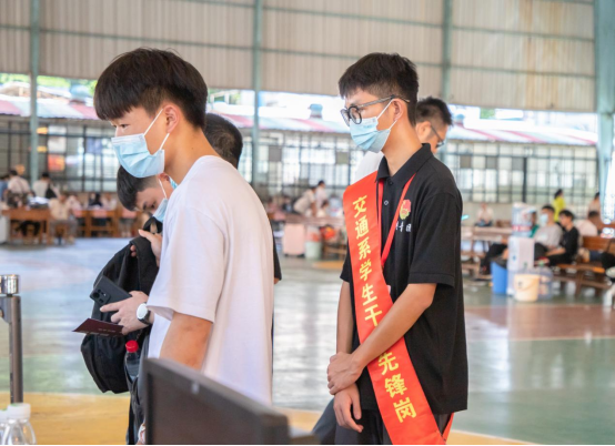自早上7点半开始,报名处陆续迎来开学报到的学生,体温测量、行李消毒、违禁物品检查、健康码(绿码)核查、行程码核查、身份核实、48小时内核酸阴性证明、引导进入宿舍入住,报到现场老师们应接不暇的忙碌着。