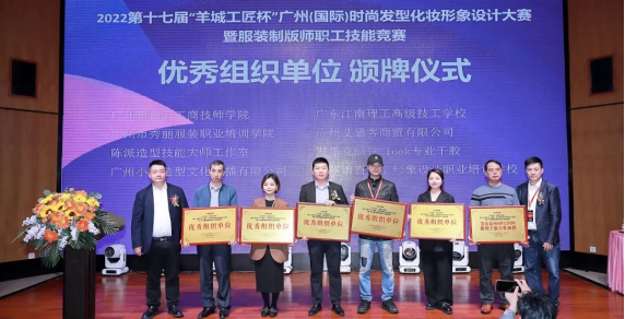 本次活动为2022 年“羊城工匠杯”第十七届广州(国际)形象设计时尚发型化妆大赛暨服装制版师职工技能活动的优秀组织单位及获奖选手进行了颁奖。我校荣获了“优秀组织单位”荣誉。