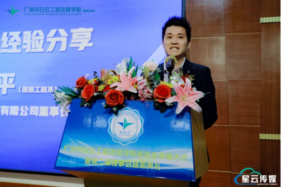 信息工程系的冯平校友代表校友分会,分享了分会的发展历程和管理经验。同时,他也表达了22年以来,从未忘记自己是白云工商的学子,每年都会回母校2-3次,每当看到母校的发展和变化,都会感到无比自豪和欣慰。他深信,在未来的日子里,他将与各方保持紧密的联系,共同为母校的发展贡献力量。