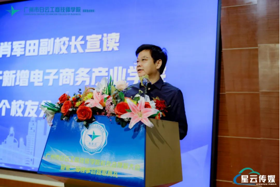 副校长肖军田代表校友总会宣读《关于新增电子商务产业学院等3个校友分会的决定》。新校友分会的成立,不仅发展壮大了校友组织,注入新的活力,有效整合校友资源,也构建了沟通平台,让更多校友携手并肩,推动校友会事业迈向新的高峰。
