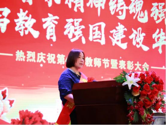 在庆祝第41个教师节暨表彰大会上,周强副校长宣读《广州市白云工商技师学院关于表彰2024-2025学年最美教师、先进集体和先进个人的决定》