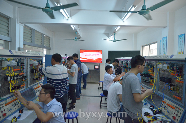 在15天的培训学习中,负责承训的我院机电系系不仅制定了科学合理的教学计划和教学大纲,还挑选了多位在电工技术领域技能精湛的专业教师担任培训讲师,教授这些学员们学习“电力拖动控制电路设计、安装与调试” 、“室内布线设计 ”、“PLC编程”和“变频器应用技术”等方面的内容,并采取集体备课、“ 理、实一体”、“蓝墨云班课”等培训方式,最大程度地提升培训效率和效果,真正让受训学员学到了技能。