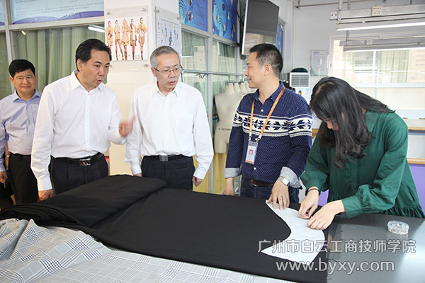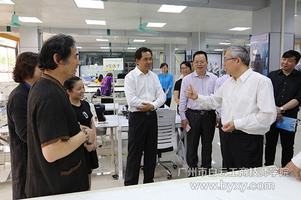 在听取了谢可滔董事长、李孟强院长的汇报和实地考察了学院的服装设计、工业机器人等等专业实训基地后,汤涛副部长高度肯定了白云工商技师学院这些年来在教学改革与创新、师资队伍建设、高技能人才培养等方面所取得的成绩。他说:“广州市白云工商技师学院坚持面向市场,走紧密的校企合作之路,为经济社会的发展提供高技能人才支撑的先进教学理念,以及专业设置、教师队伍的培养、一体化课程建设等和‘以学生为中心’,服务学生的成长成才等方面,都走在了国内同类技工院校的前面,起到了示范引领作用。”